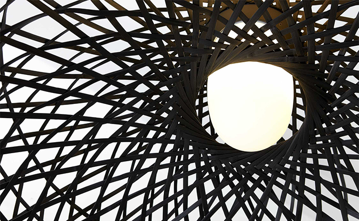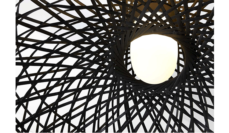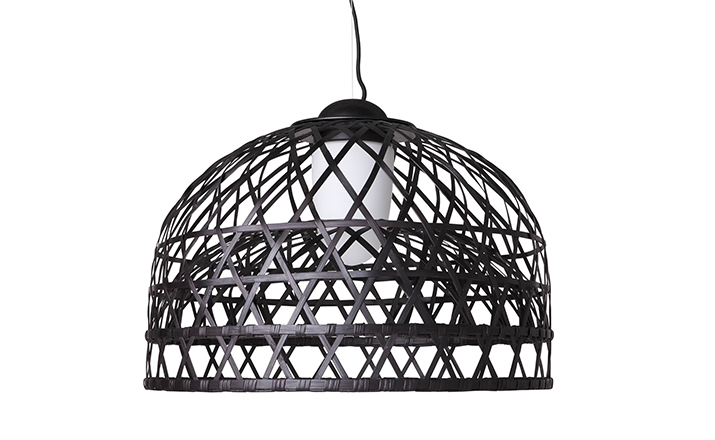 "Once upon a time an asian emperor received as a gift a nightingale. The charming bird sang so beautifully that the emperor always wanted it by his side. He placed the nightingale a majestic hand woven bamboo cage in the imperial chambers and listened, enchanted, to the magic sound" Material: Bamboo rattan cage, aluminum frame and glass diffuser Additional: Each cage is woven by hand And therefore has a unique character.