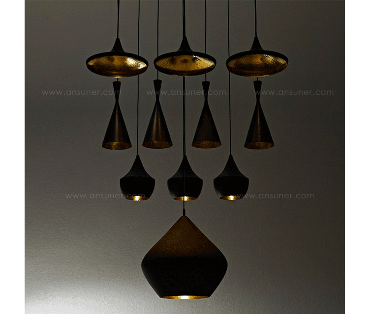 lamps series of brass beat light is a series of suspended luminaires by tom dixon. the lamps are handmade brass produced and receive their black aubenfarbe later. the beat lights differ in the form of their screens.beat light wide has a shallow but wide screen. beat light stout has a compact, rounded umbrella. beat light fat is small, but far and compact. and beat light tall is funnel-shaped and oblong.simple black housing all lamps is their simple black appearance together. the various screens but for different lighting. the brass one home is due to the different forms of different highly visible, why the lights in different but always as "related"remain identifiable.black exterior and interior messingfarbenes the black exterior and the brass one, bright home, giving the light an interesting and geheimnissvolles appearance. nevertheless, the beat light lamps are due to their simple forms and colors in each institution, the second look, but certainly a highlight that the views of themselves.the beat light lamp by tom dixon of brass in black in the variants produced wide, fat and tall. the lamps series is also in variations of brass in other colours.