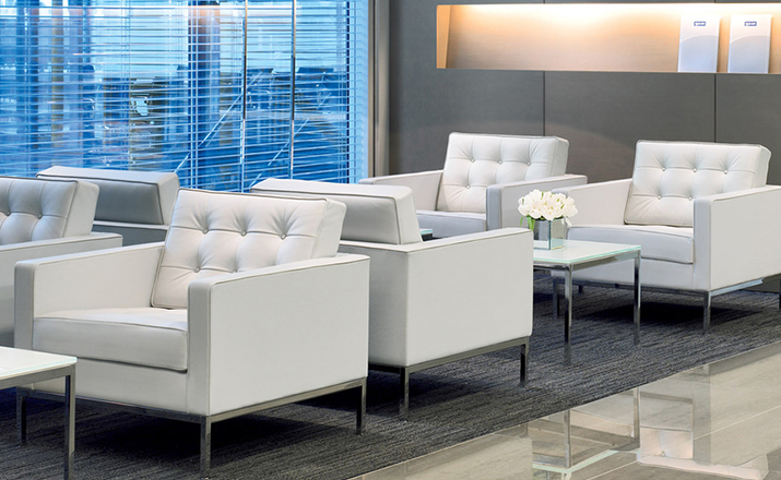 The Florence Knoll Sofa is a classic furniture design that rooted in England in the 17th century.This form of soft furniture design features side arms and considerable depth of seating.Comfortable cushions in Italian leather.Bright stainless steel legs.Leather cover range depends on the require.