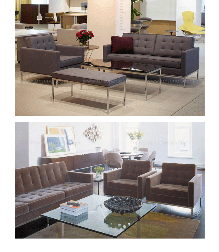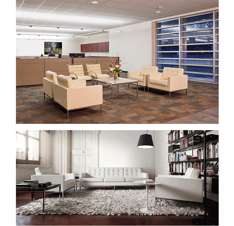 The upholstery of this chair is Italian leather,which is healthy and environmental-friendlyno allergy to skin, no pollution to environment;The pipings and buttons of Florence Knoll Sofa Florence Knoll Sofa florence knoll setteeare in the same Italian leather,no scratching off for years;The cushions are high elastic foam, offering a comfortable seating feeling and no losing shape for years;Two seaters,three seaters are available.