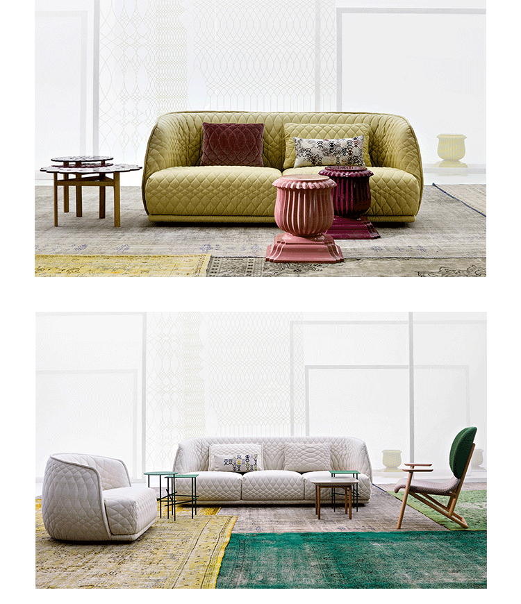 Redondo is an elegant seating collection which includes two sizes of armchairs and sofas as well as various customizable elements.The armchair and small armchair feature injected flame-retardant foam over an internal steel frame with polypropylene glides in your choice of upholstery.All covers are quilted in a design by Patricia Urquiola as an integral aesthetic of this collection.The Redondo seat cushions are polyurethane foam & polyester fiberfill.Optional back cushions are goose down and offered online in one size but available in a variety of sizes(please call to specify).Covers are removable.