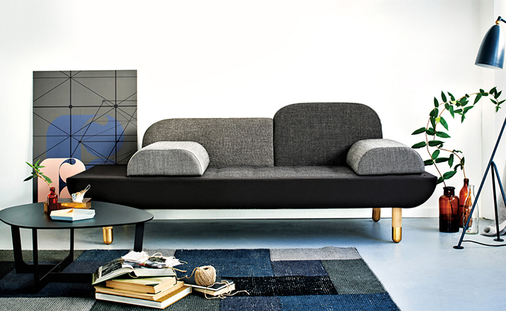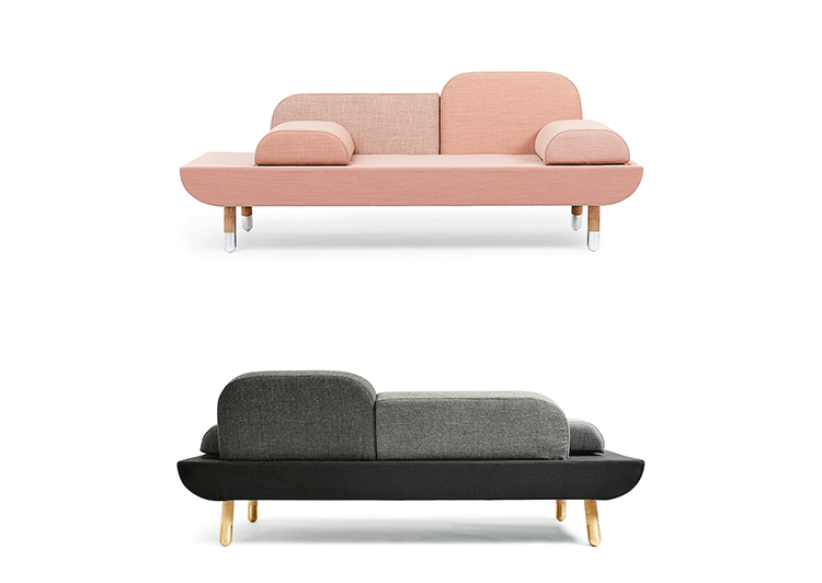 Toward is a comfortable sofa that allows the user to lounge in multiple ways.By merging the normal use of an armchair,a chaise longue and a tete-a-tete,the design emerged.Toward is a base with a mattress and two back rests in different sizes.The two loose and interchangeable cushions further opens up for a versatile appearance and function.To achieve a unique product with high aesthetics,a lot of consideration went into combining the color nuances and texture of the textiles chosen.The sofa comes in five color combinations:light gray,dark gray and brown,pink and dark blue shades with shoes in solid brass or aluminum.Every color combination consists of 6 different color nuances and textures from Kvadrat Textiles.