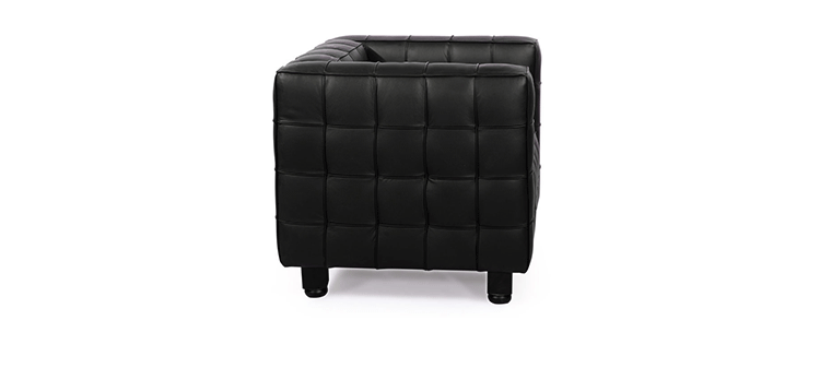 This high quality reproduction of the Josef Hoffmann Kubus Chair features a handcrafted hardwood frame graciously lined with polyurethane foam. The surface is luxuriously soft to the touch,compliments of its premium 100% Top-Grain Aniline leather upholstery. This premium reproduction is generously proportioned to original full-scale size and cube count.Precision stitched & aniline leather piped tactile cubes create a thick body of cushioning that is so comfortable you’ll understand why this sofa has been a modern classic for nearly a century.For those looking for historic significance in midcentury modern furnishings,the Hoffman Kubus is a certain candidate.