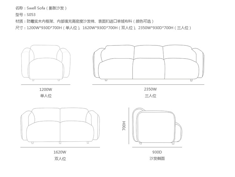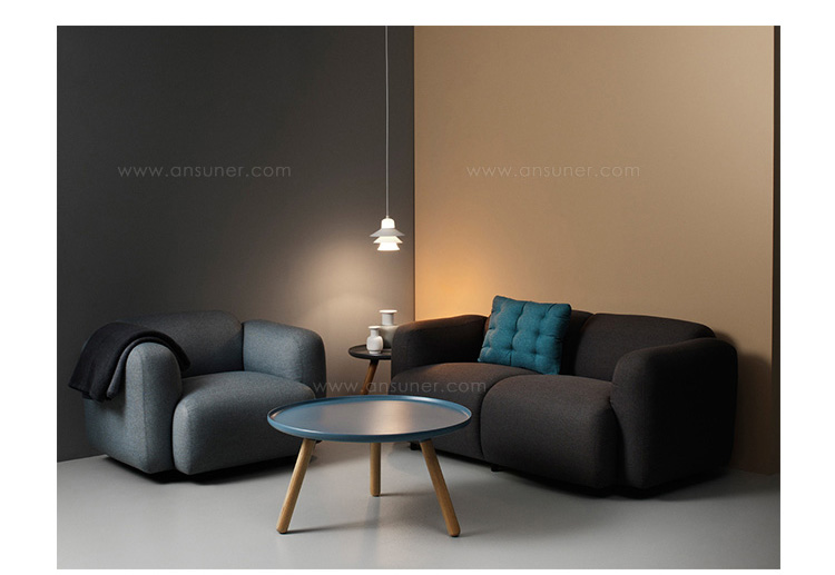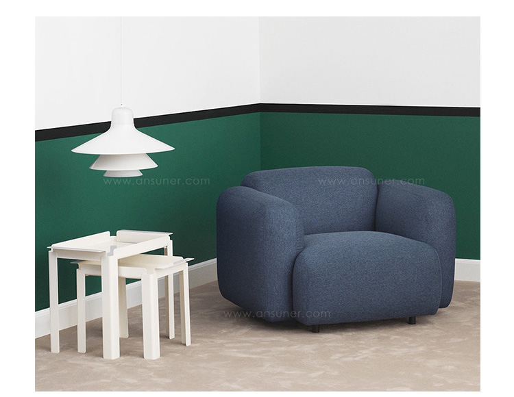 Swell 的命名借鉴于不断发酵膨胀的面包。它有一个饱满的形状,由一个强有力的衬垫,座位和两个弯曲的扶手组成,背面缝合,座位将沙发划分为几部分,最终达到这种饱满的舒适感。