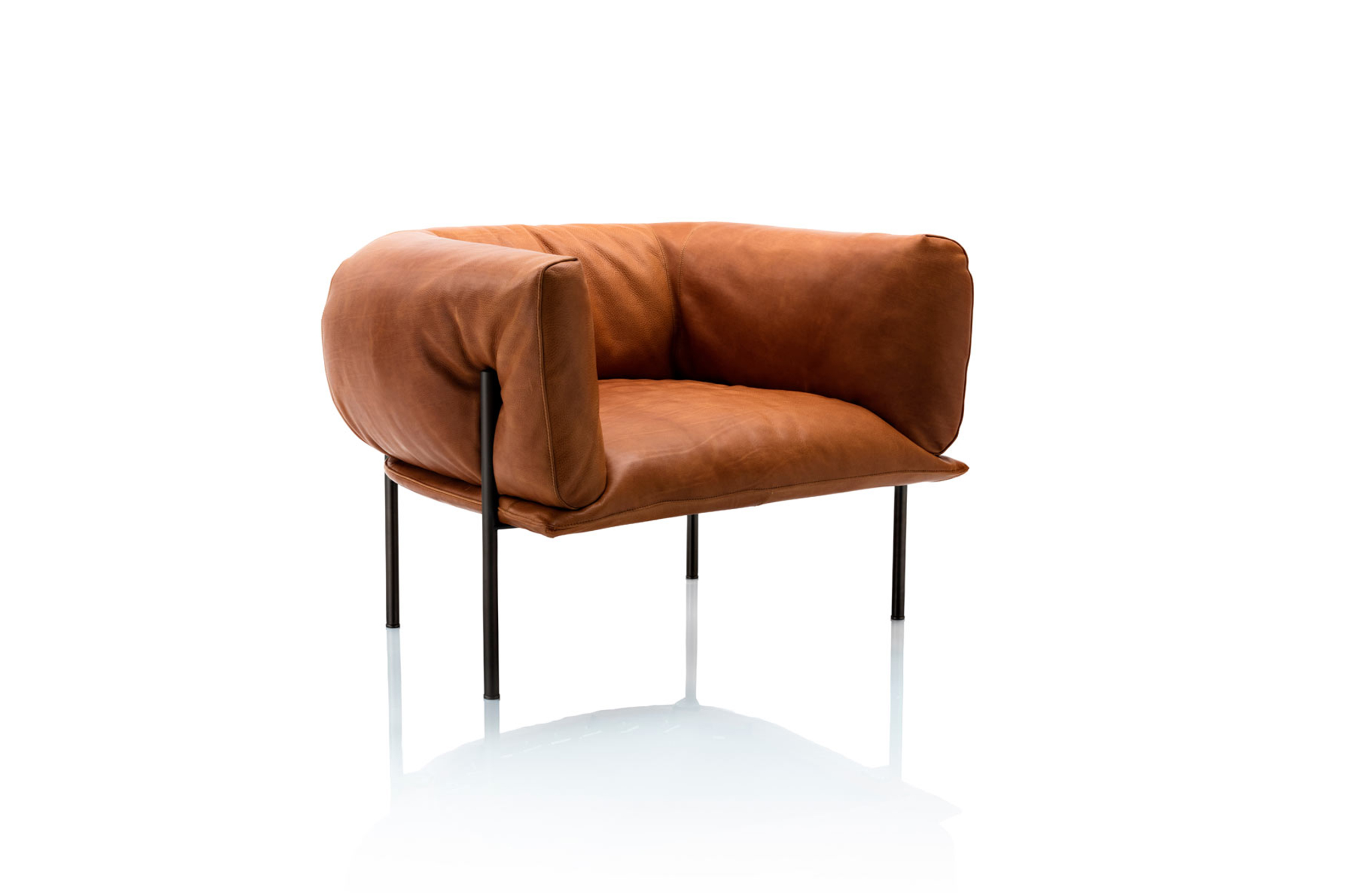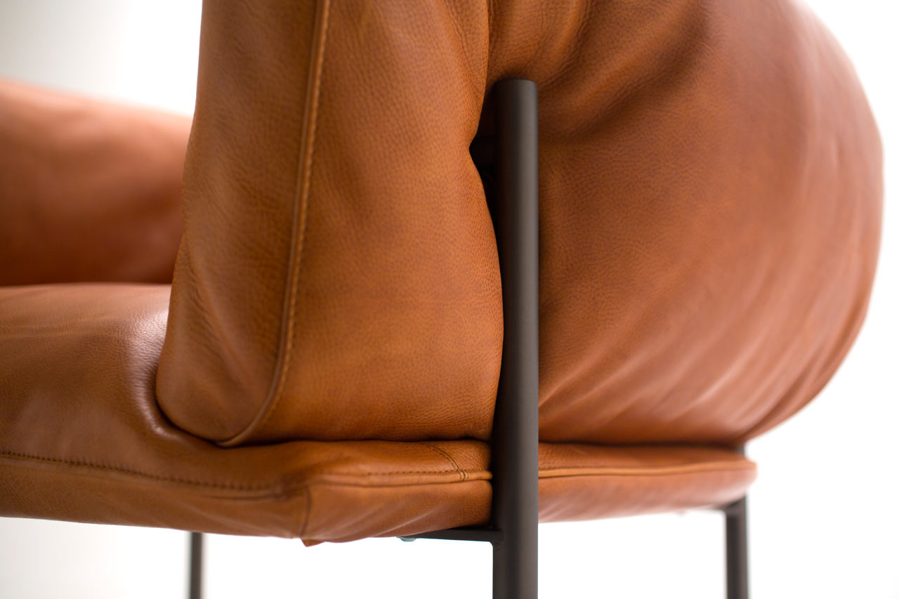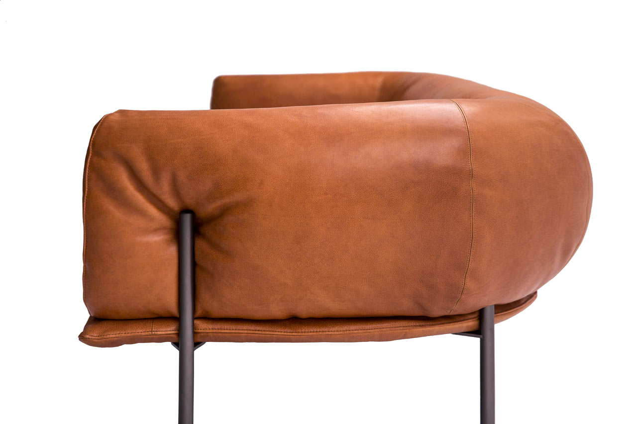 这是一项旨在颂扬皮革工作艺术的合作项目,它的特色是由露西库勒尔设计的沙发和椅子,为莫里纳里的人设计的,灵感来自于沙袋。看看那些“散发出经久耐用和工艺精湛”的家居皮革制品,库勒尔的系列产品将以顶级质量、厚重的皮革制成,就像一个出气筒的强度一样。简单的腿压在两边的皮革上,显示出软垫的柔软度,邀请你像拳击手一样把你的手臂环绕起来,如果它是一个包的话。
