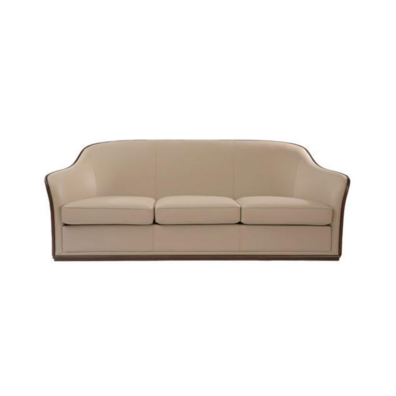 沙发造型现代优雅,旨在展现出一种精致尚雅的新海派轻奢生活方式。为了打造更为舒适的沙发造型,沙发的扶手比普通的沙发要长一点低一点。整体采用木质边框,线性流畅。沙发的脚部同样使用木质边框。彰显现代精致的设计感。