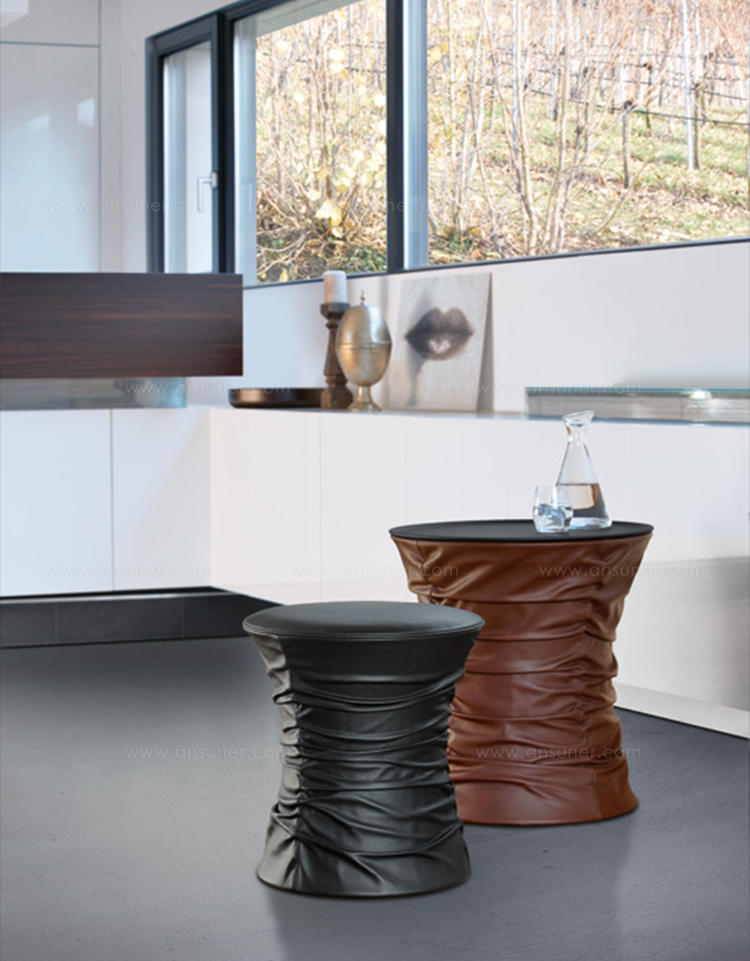 创新的设计源于对不寻常的想法进行塑造的勇气。Bellows Collection系列就是一个例子,凳子和桌子的设计令人眼前一亮,并达到了我们的预期。柔软的皮革褶皱的包裹在坚固的框架上。褶皱程度随着它的高度而改变。用一个最简单的动作,便可以利用隐藏于座椅下的环形扳机进行高度调节。