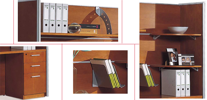 ※ 上图文件柜的各种功能展示图,分别有落地柜和功能挂槽,挂式文件夹,角落弧形书架 ,移动层板件等等系列功能件!