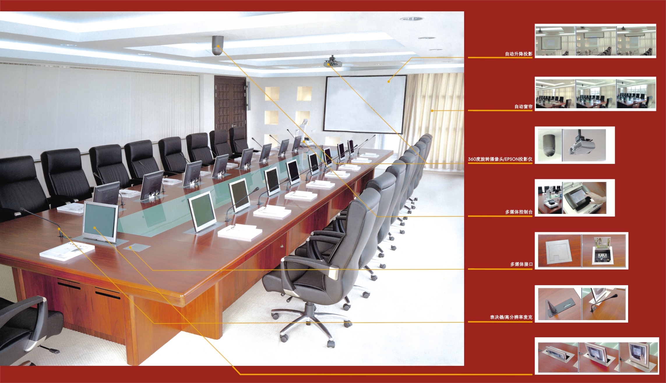 ※ 多媒体会议桌,把自然的质感展现再次,柚木、胡桃木的实木工艺表现,让自然的概念在您的雅域表现出来;现代办公空间中的自然色彩,为您的办公室写上自信与自在!