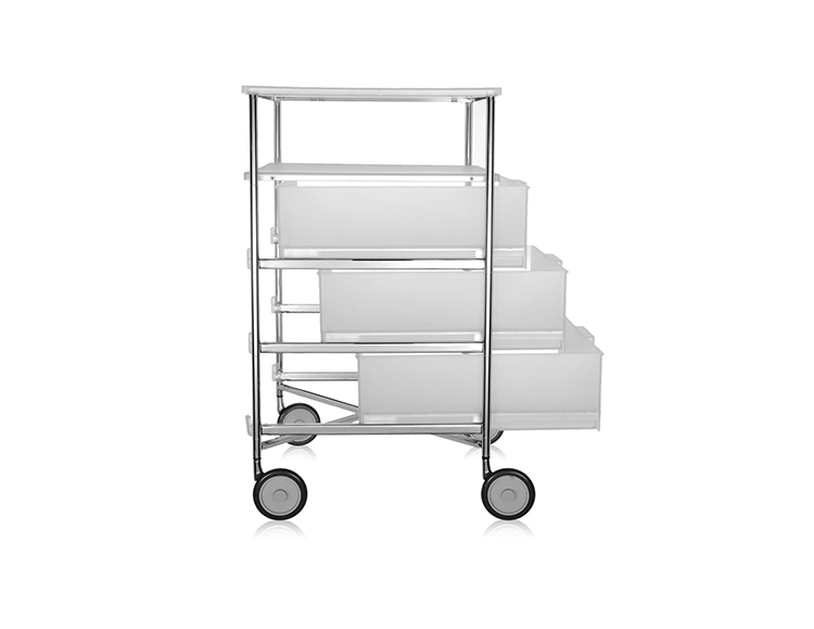 Mobil storage(移动储物柜)是由意大利国宝级设计师Antonio Citterio(安东尼·奇特里奥)设计的,他的设计跨越三大洲,已成为设计领域最活跃的渊博人士,1972年,他与著名品牌Arclinea厨具、flexform、Flos灯具等合作,1987年,为B&B设计的座椅获金罗盘奖.Mobil取自移动机制知名,带有随处收纳、移动变幻的多元满足,以多层抽屉式的收纳,搭配置物层版,不论是作为床边柜、工作室文件抽屉、生活收纳等,都非常合适。此外,另可选择滑轮式样、或是固定式座脚,自在搭配。