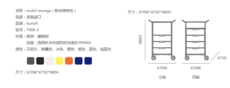 Mobil storage(移动储物柜)是由意大利国宝级设计师Antonio Citterio(安东尼·奇特里奥)设计的,他的设计跨越三大洲,已成为设计领域最活跃的渊博人士,1972年,他与著名品牌Arclinea厨具、flexform、Flos灯具等合作,1987年,为B&B设计的座椅获金罗盘奖.Mobil取自移动机制知名,带有随处收纳、移动变幻的多元满足,以多层抽屉式的收纳,搭配置物层版,不论是作为床边柜、工作室文件抽屉、生活收纳等,都非常合适。此外,另可选择滑轮式样、或是固定式座脚,自在搭配。