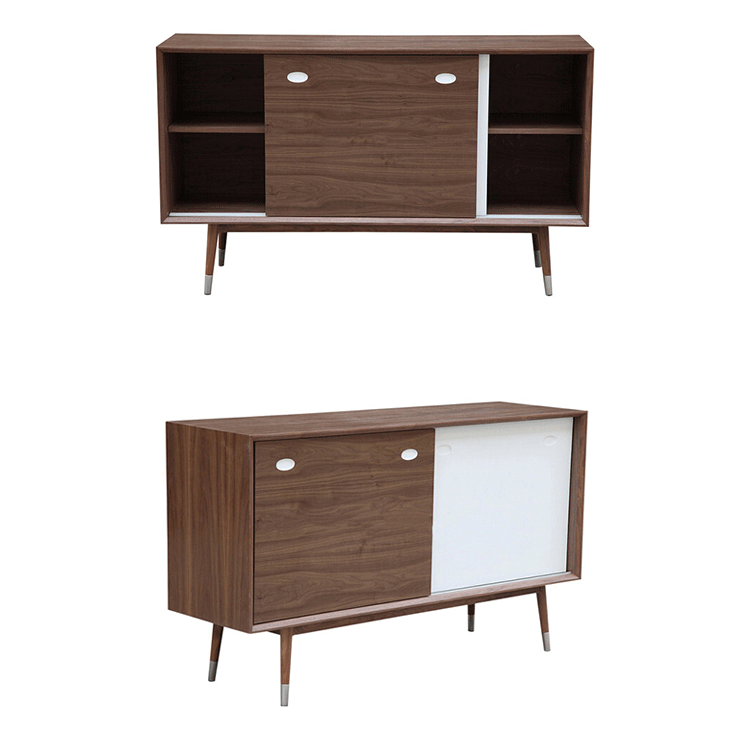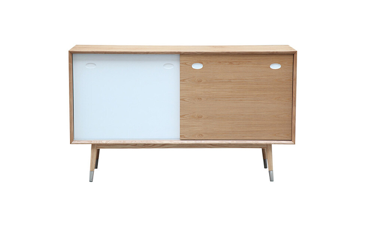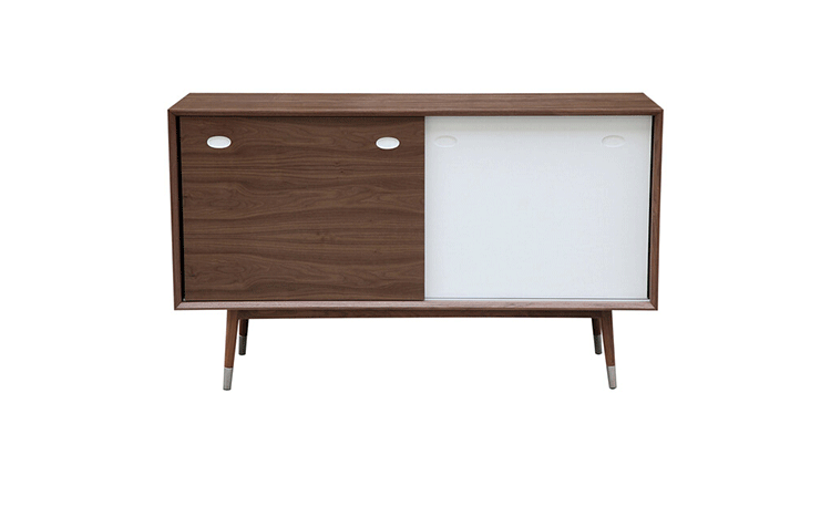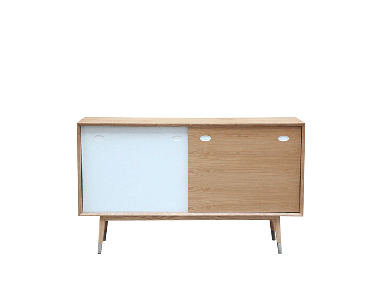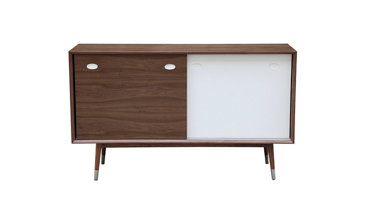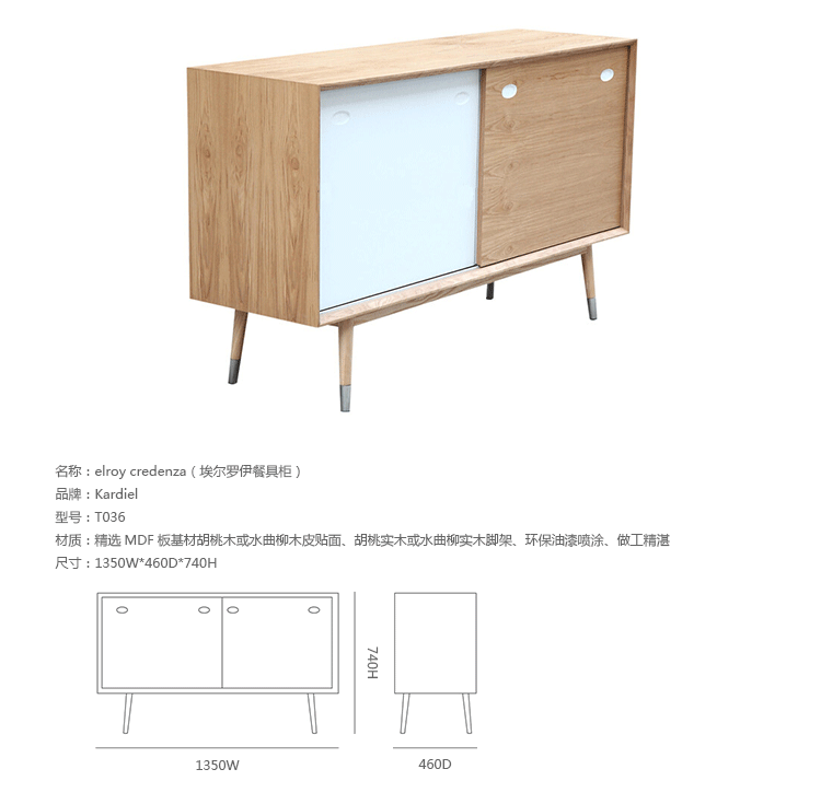 elroy credenza(埃尔罗伊餐具柜)是Kardiel公司制作的经典实木家具,干净、洁白,结合自然灰木色,六十年代中现代主义特色,设计本身也混合着设计师Soren Nissen & Ebbe Gehl的自然原始的现代风格。制作采用精选MDF板基材胡桃木或水曲柳木皮贴面、胡桃实木或水曲柳实木脚架、环保油漆喷涂、做工精湛。