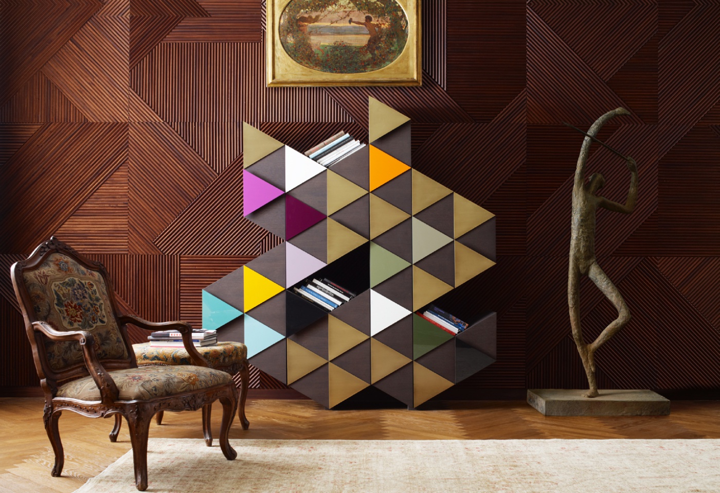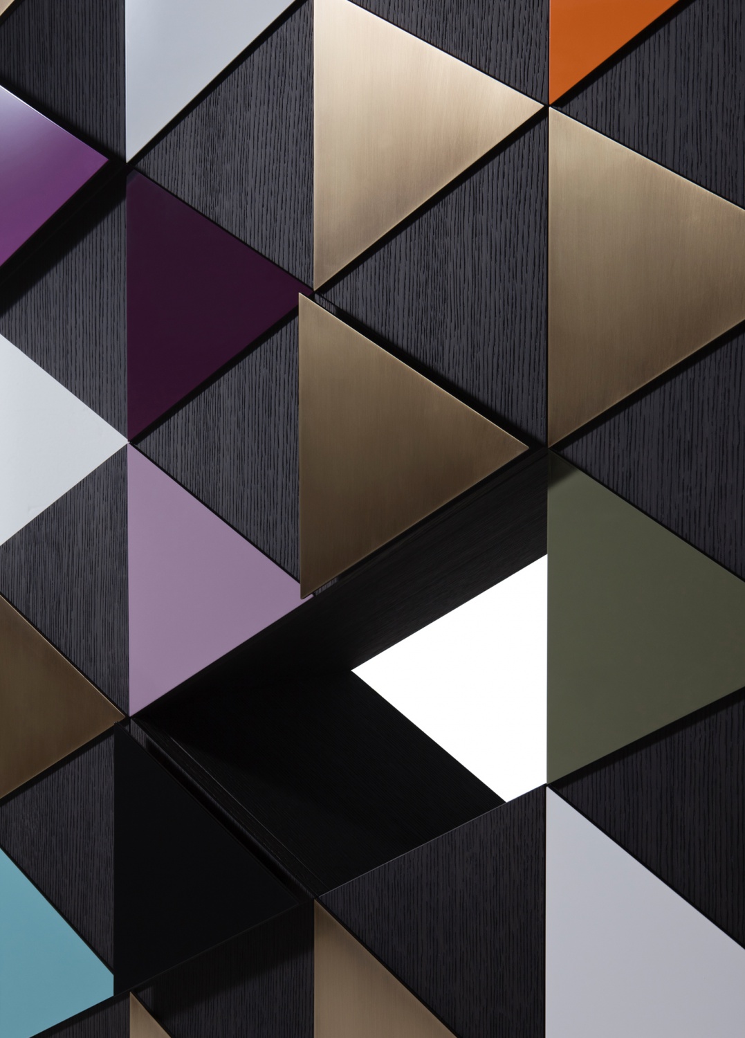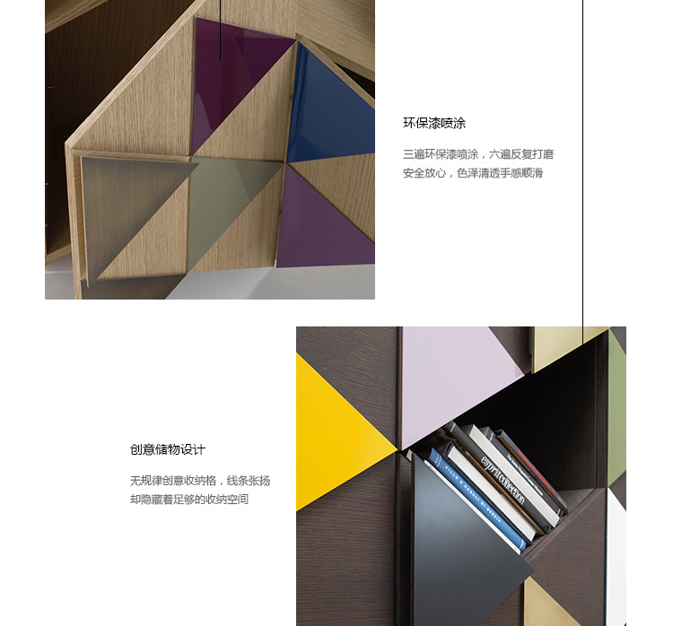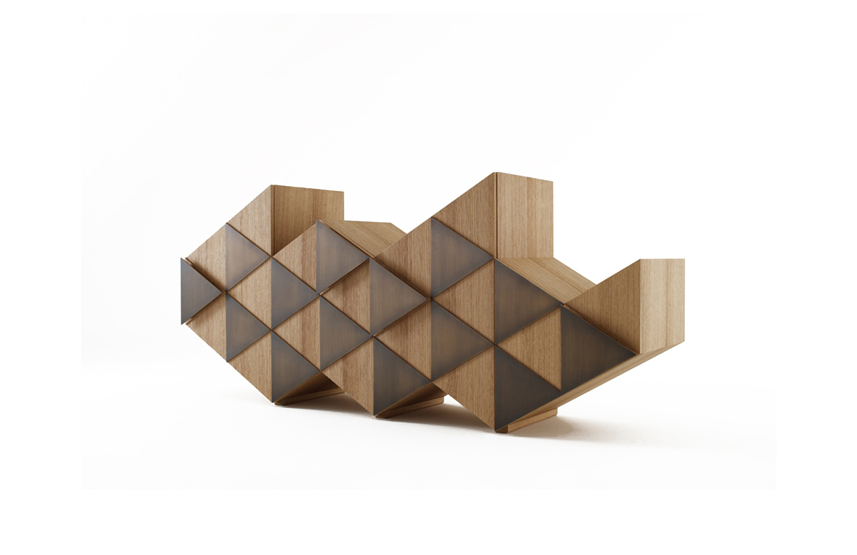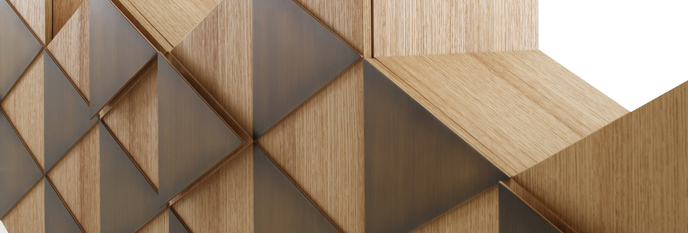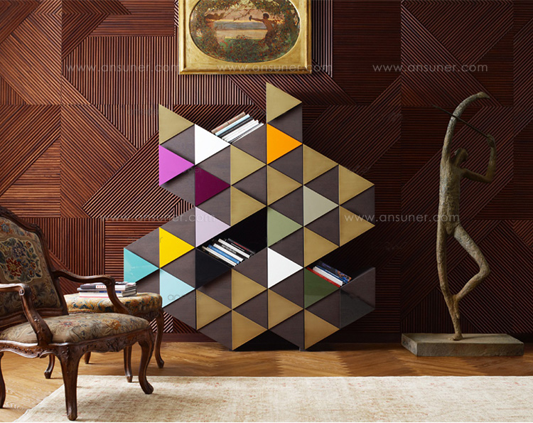 橱柜与雕塑不寻常的形状,配有门、装饰的三角形,塑造遵循几何方面的设计。