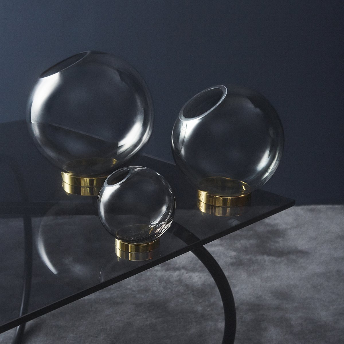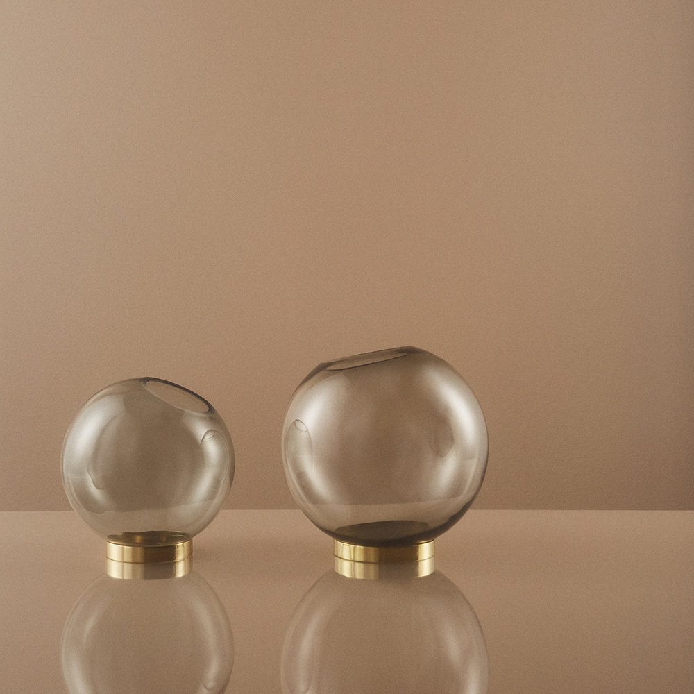GLOBE 是一个优雅的器皿,由口吹玻璃制成,配上铜环底坐。您可以将它用作装饰花瓶或储物器皿。