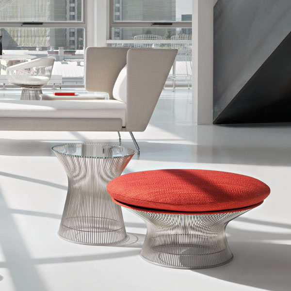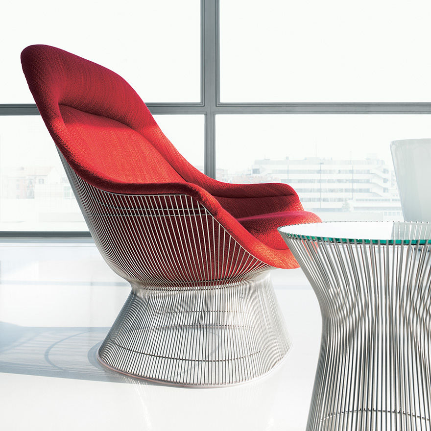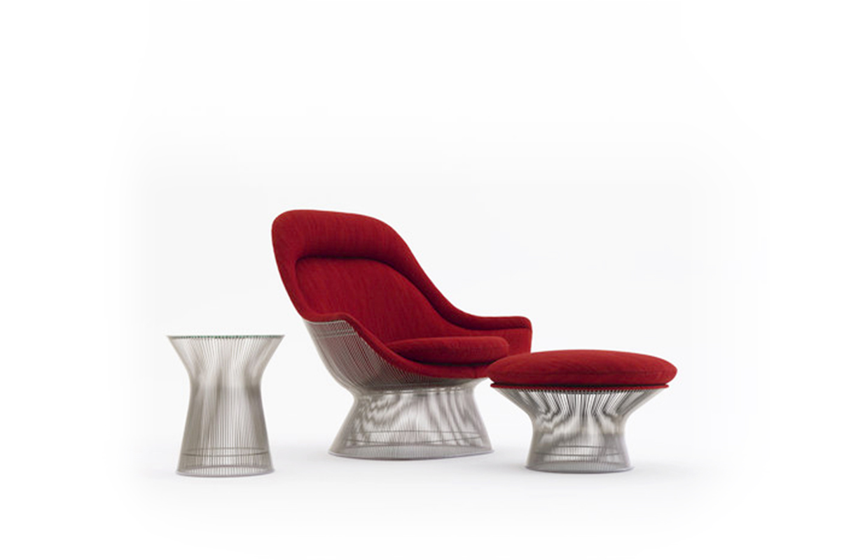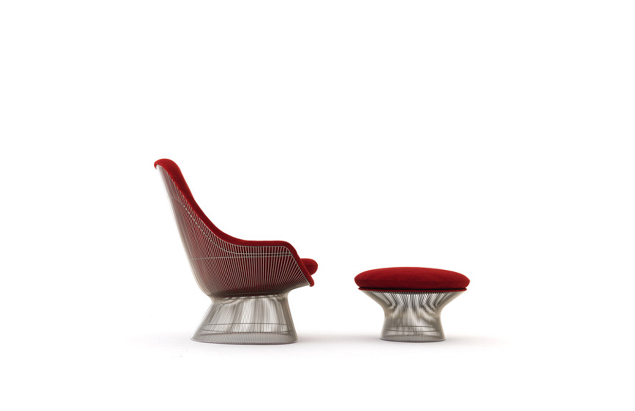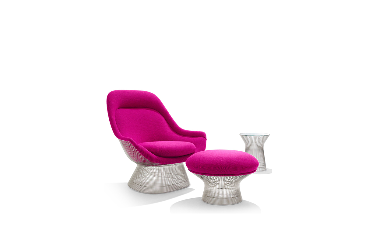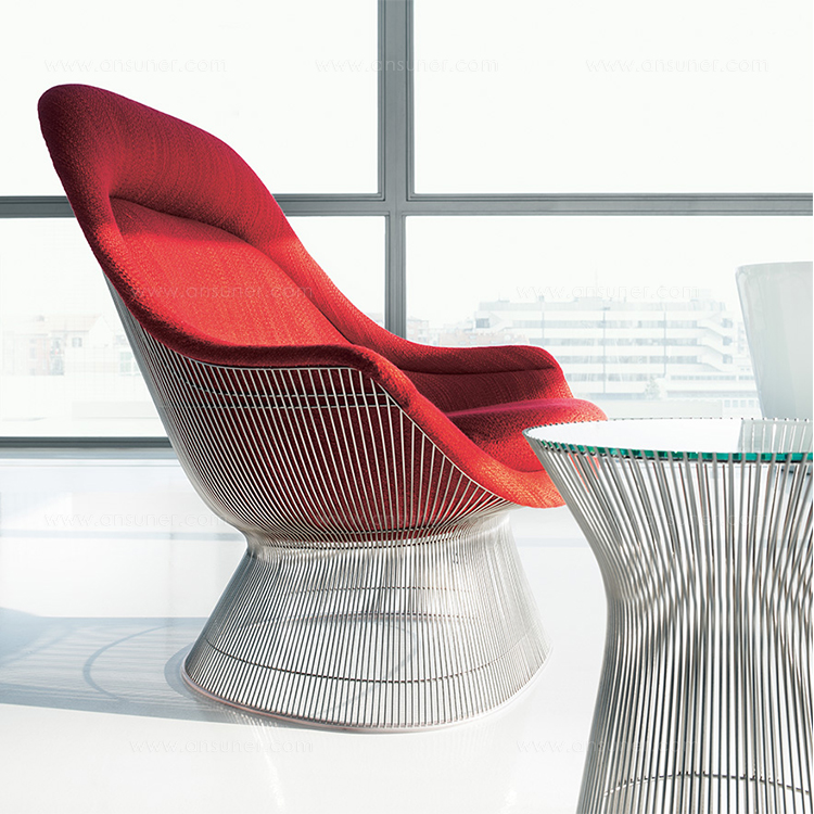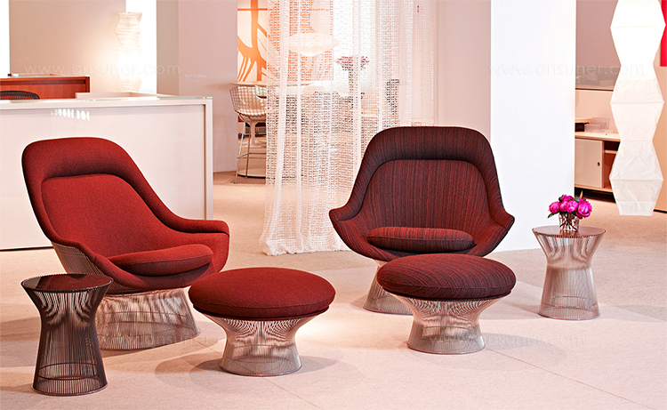 在1960年代,沃伦Platner钢丝变成了雕塑家具收集、创建现在被认为是现代的设计图标。 Platner收集独特的和谐的形式是由焊接钢线材圆形镜框,生产波纹效应和捕捉装饰、温柔、优雅的品质Platner试图实现。 手的安乐椅上,一个流行的雕塑图标削几何形状和颜色,是弯曲的舒适的缩影;它可以有或没有脚踏,也可以单独使用。