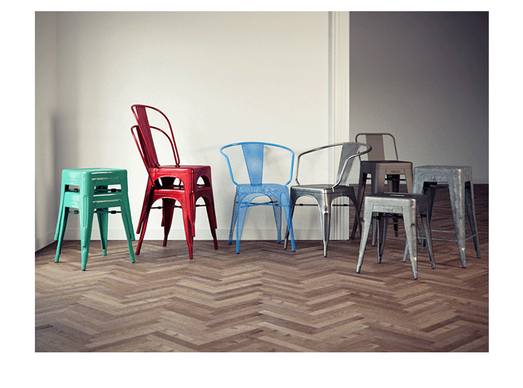 tolix chair(tolix椅)一把有味道、有态度的椅子,据说它最开始被使用在一艘战舰的天气预报房间里,故事的真实性与否不得而知,但是不影响其成为享誉世界的著名设计家具,1934年由Xavier Pauchard设计,早期是作为户外用家具设计,力图展现法式慵懒而闲适的气质,经年而来被全世界时尚设计师所宠爱,从室外扩展到家居、商业、展示等多个用途,而此椅也不负众望在各类空间中均有上佳表现,特别是近年来与混搭、乡村、美式、怀旧、北欧简约、中式等主要装修风格搭配,都呈现出独特的韵味,也被时尚界赞为“百搭第一”椅,可以用在酒吧,餐馆,咖啡馆等等地方,之后通过改进,设计出有扶手版本的tolix armchair(tolix扶手椅),高背版本的tolix high back bar stool(tolix高背吧凳),宽背版本的tolix wide back bar stool(tolix宽背吧凳),及tolix bar stool(tolix吧凳)和tolix mini stool(tolix迷你凳)。制作采用进口冷轧钢、磷酸防锈处理、静电油漆喷涂工艺、坐面为木板或PU海绵坐垫,颜色可选。