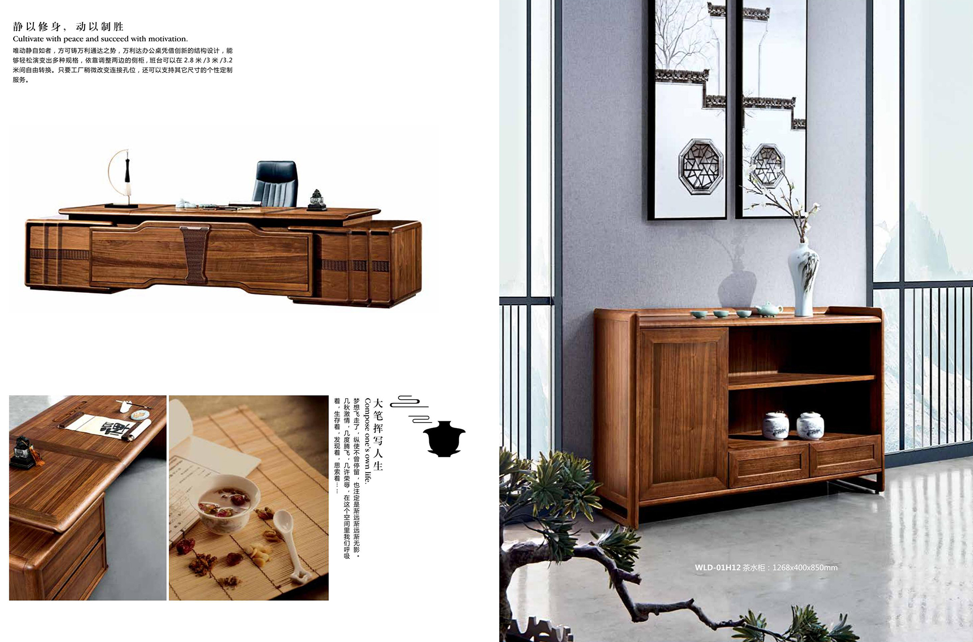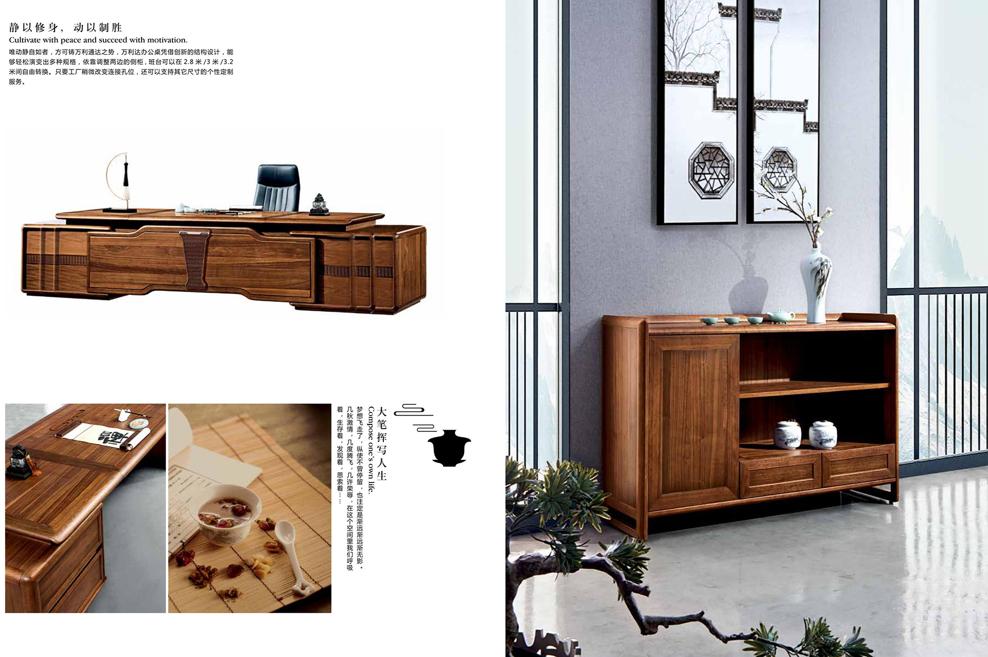 【静以修身,动以制胜】 Cultivate with peace and succeed with motivation唯动静自如者,方可铸万利通达之势,万利达办公桌凭借创新的结构设计,能够轻松演变出多种规格,依靠调整两边的侧柜,班台可以在2.8米/3米/3.2米间自由转换。只要工厂稍微改变连接孔位,还可以支持其它尺寸的个性定制服务。