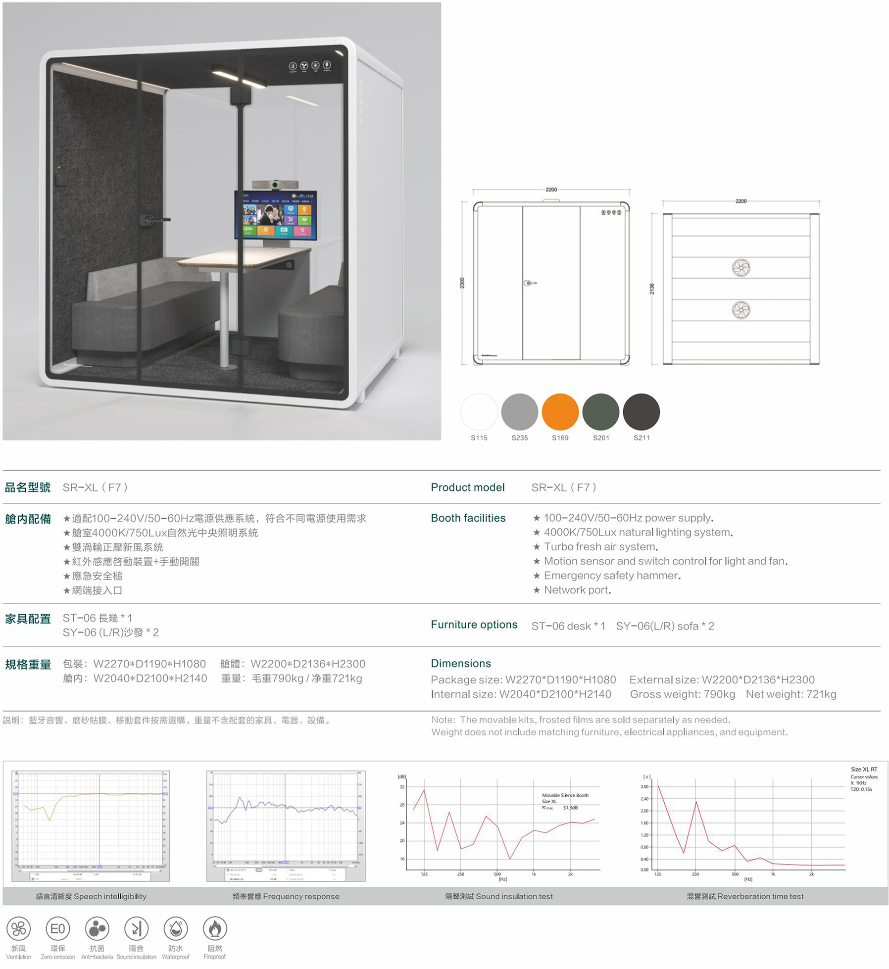 一个灵动的安静空间,满足您无限创想不传统的碳塑复合板、航空铝、隔声玻璃是它的主要组成,SOLIDWORKS软体力学建模让仓体组装仅需一种紧扣件,INSULMARSHALL ACOUSTIC 声学模拟设计准确预知并实现了舱体隔音和舱室音环境指标,它是一个强大,尽管它不是最完美的迷你空间,仓体采用可循环碳塑再生材料 SR系列 静音仓推崇低碳、简约、安全、实用主义优化非必要的功能和配置。从薄的全R角外观和互雅配色让它更精致、融入环境。