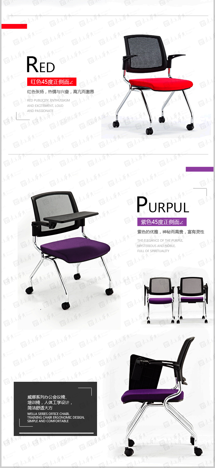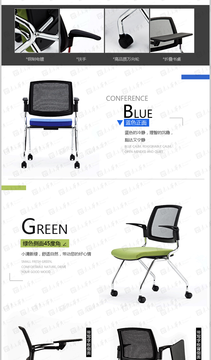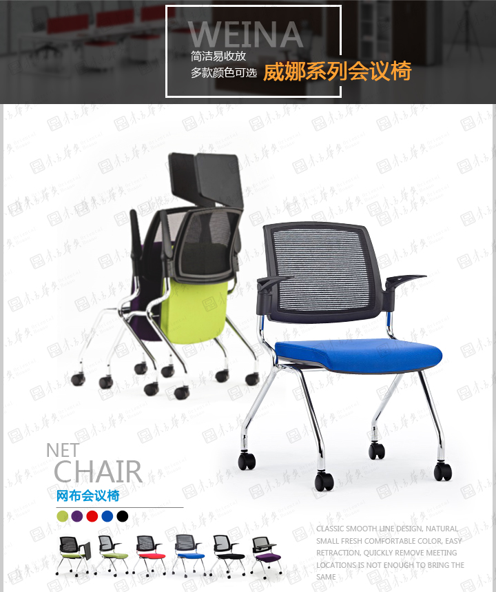 办公椅|网布会议椅|Weina|简易收放办公会议椅,带写字板会议椅