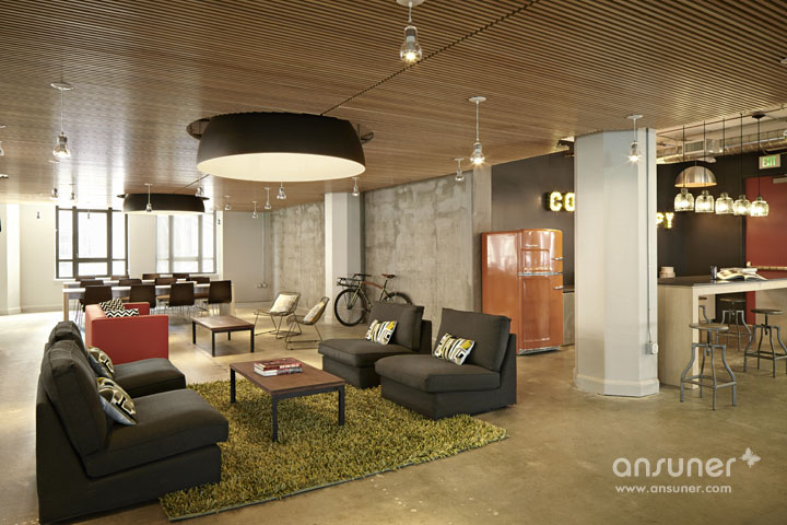 Runway社区,新兴创业者的孵化基地。设计的挑战在于如何将其打造成一个热情且具特色的办公空间,使其在众多同行中脱颖而出。设计团队以前卫的设计概念将这座位于 Twitter大楼占地30,000平方英尺的孵化基地打造成一个时尚的社区,而非仅用以工作的办公场所。刚起步的创业者可租用一套桌椅或400平方英尺的区域空间。