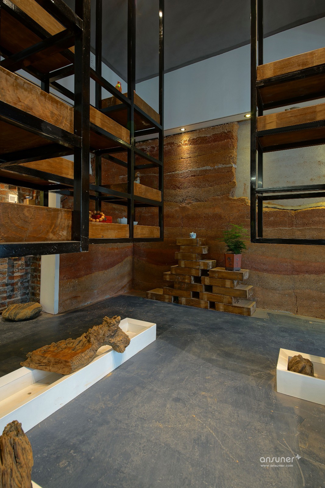主要材料:自流平、红砖、麻石