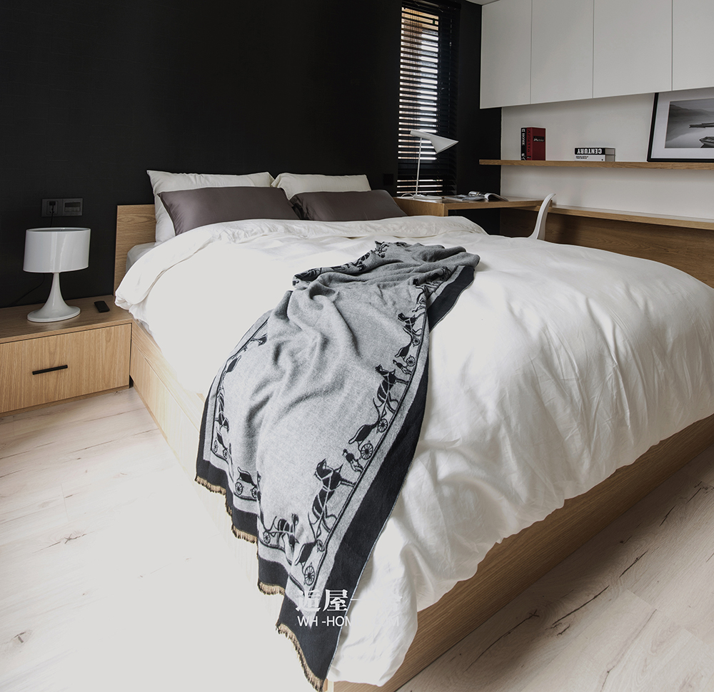 材质上,整个空间也利用了部分天然染色木皮做主体,连接空间的同时又隐藏掉多余的电器设备,使空间整体而不凌乱。