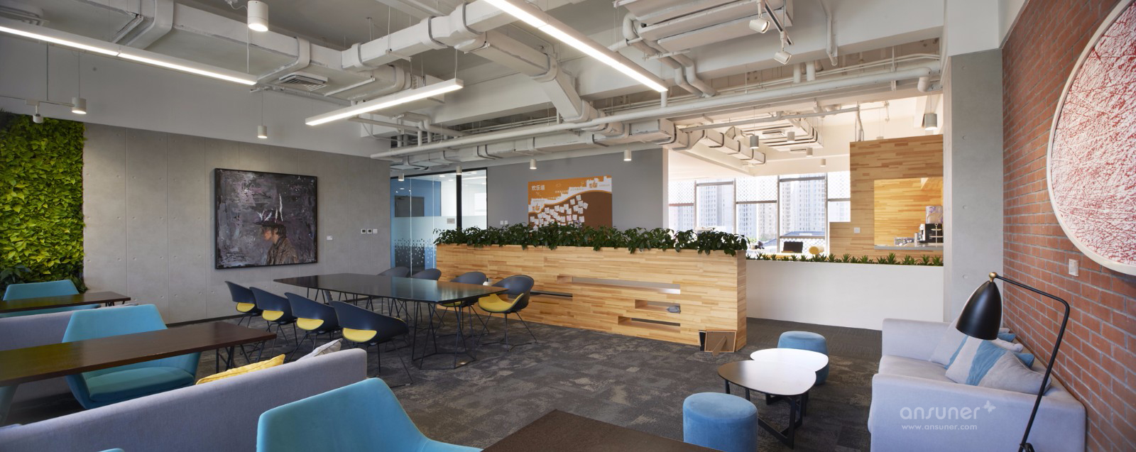 鸿坤地产位于北京的新总部办公楼由艾迪尔打造设计。项目共六层,位于南四环的城市核心,毗邻宜家、荟聚等两大购物配套。设计师希望通过高效生态、创意共享、激情趣味、关爱友善的设计,让空间变得丰富多彩,让工作变得简单快乐,让交流变得顺畅自如。