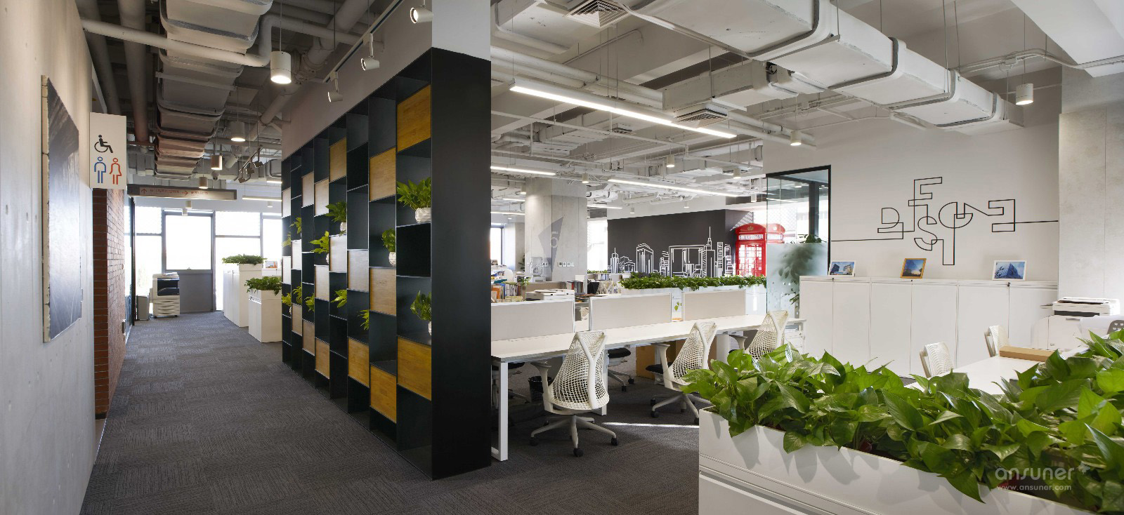 空间以灰白和木色为主色调,局部空间用鲜艳亮色加以点缀和活跃气氛。整体设计风格现代,稳重中又不失活力与激情,且处处体现着公司对员工的人文关怀。