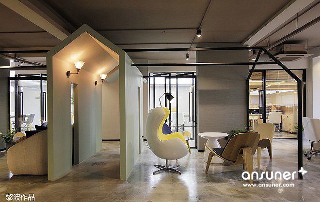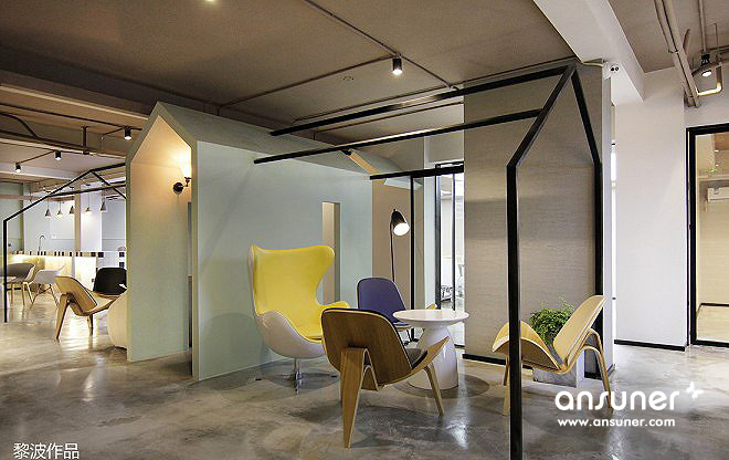 有效区分了空间,同时,将工作和休闲进行融合。整个空间在动线功能分区上更加开放、通透、亲密。