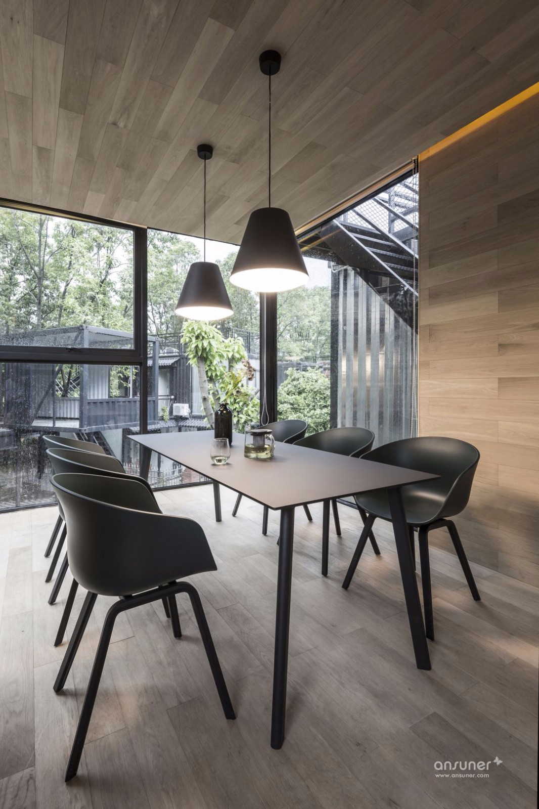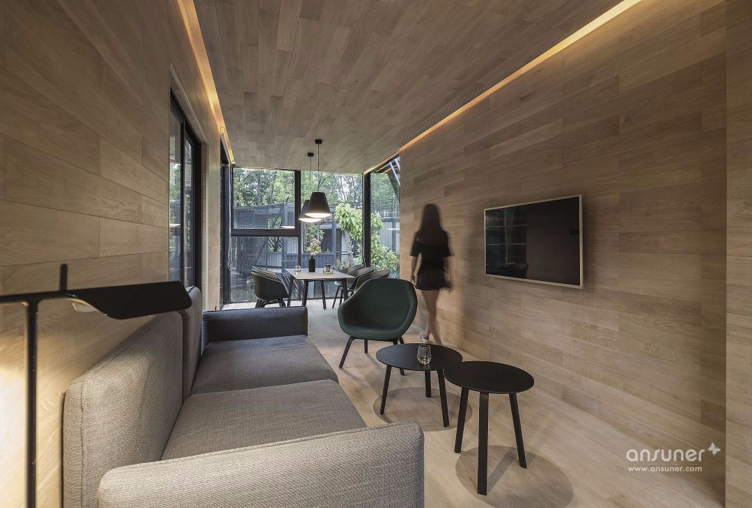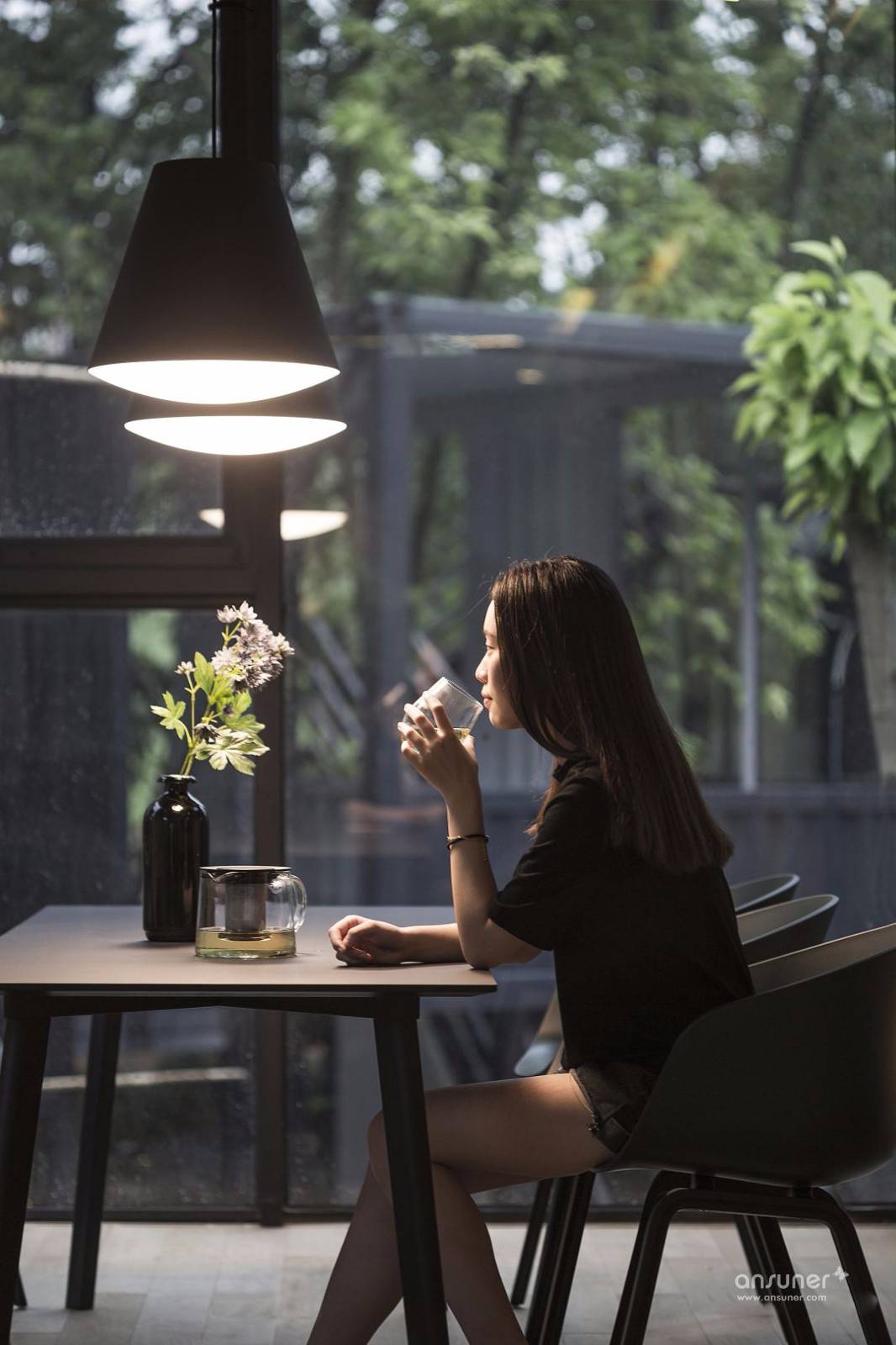 在设计这个项目的时候,除了解决功能上的需求,考虑得更多的是我们怎么去利用好这个空间来形成一种好体验及氛围,不希望最大范围盲目的去进行分割加建,反而希望有草坪、院子、阳光平台等生活空间。可以三五人群一起在楼下院子草坪上的户外桌椅讨论项目,也可以一杯咖啡独自一人在阳光平台躺椅上独自思索。空间,是一个存在的语言。构筑空间,并不是理论上的色彩学与材质学的拼贴,而是如何将人的感受力转化为具体氛围,人在空间里面如何生活、如何工作、如何思想。