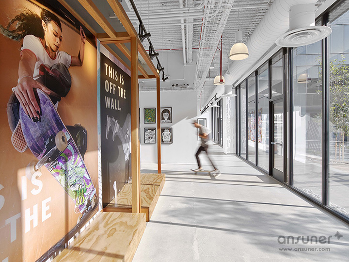 Vans代表的是一种精神一种生活方式。Vans以滑板运动为根,将艺术、音乐、运动和街头时尚文化注入Vans美学,形成潮流个性的青年文化标志。著名设计公司Rapt Studio 将这种美学特征呈现于其加州科斯塔梅沙市的全球总部办公环境中。
