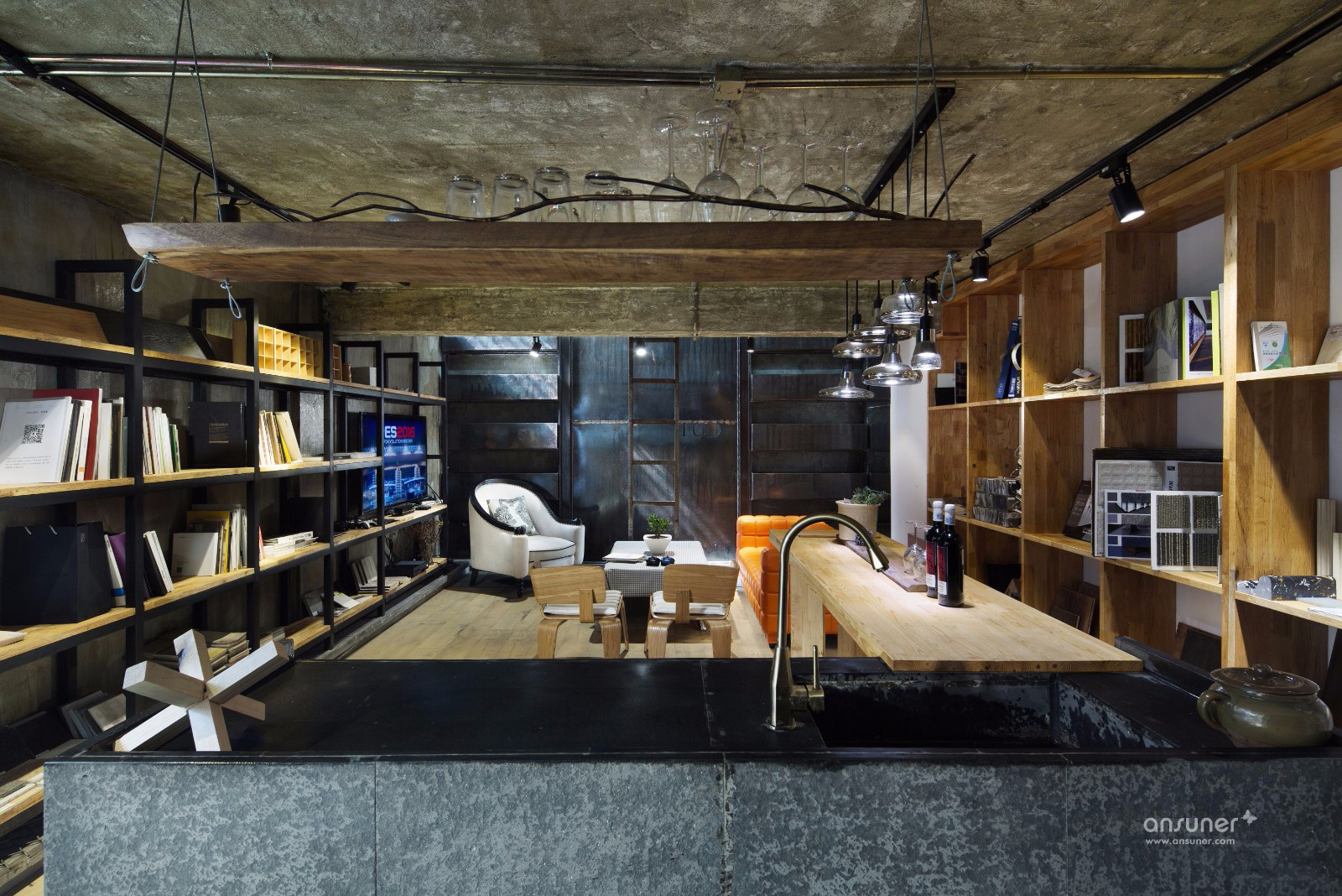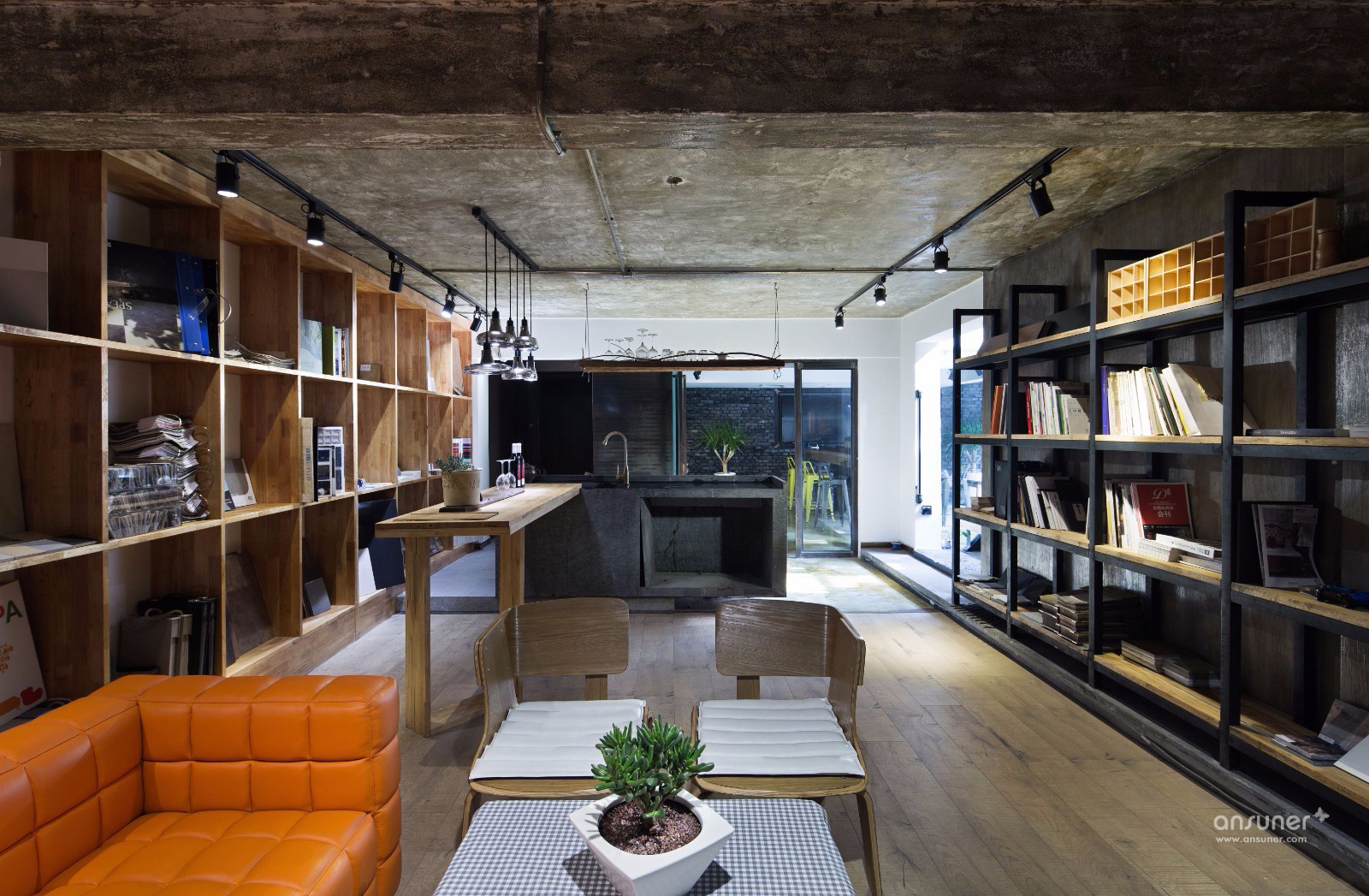 TCD空间设计机构设计总监汤晨,将这股loft风的精髓完美代入自己新的办公室。选址是在一处树木葱茏的住宅区,不被已有的构件所制约,灵活的进行设计和创造,通过立面的拆除与卸载等手段,将空间利用率提升到极致,即体现出空间延伸后的随心所欲,又让人的心灵和视觉产生自然通畅的舒适感。如此充满创意的办公室设计,当然能激发员工的创造性思维和活力。