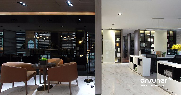 主要材料:石材、地毯、黑色不镜钢、壁布、皮革、烤漆板、木地板、木饰面