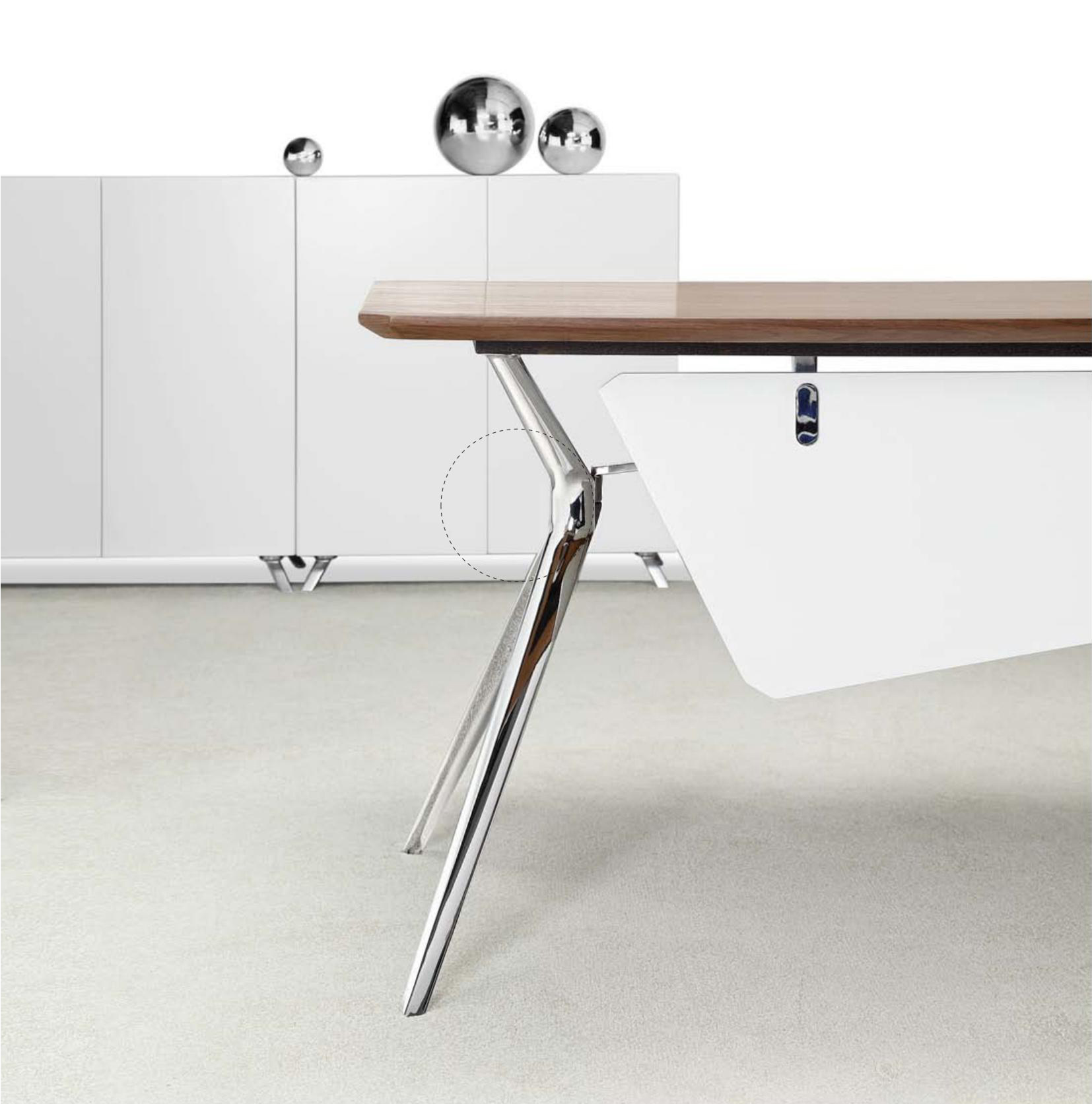 解构主义的完美实践--每一次新思想的出现总避免不了一些人的反抗,或者说总有人会有不同的看法。我们渴望拥有能贯彻自己品味的办公室,但却因使用属性、功能以及众口不一的审美而需要均衡。完美实践解构主义的精髓,以求探索寻求能够体现新的审美观念,突破固有的确定性,在细节与局部特征将个性的需求达到极致,一反简单、呆板、乏味的办公空间,将传统的办公空间提升为一种表达深层次的细节与美感结合的艺术之作。 当奇思妙想与伟大实践相互发酵之时,一个梦幻般的作品随之诞生。如同迪拜帆船酒店,Louis拥有最完美利落的金属线条,运用最智慧的头脑与建材完美结合,曲线的运用在不经意中彰显着优雅的气质,低调而轻奢的设计节奏,引发着人深层次的内心共鸣,每个小部件都是俗中求雅,且俗且雅,力图保持每一寸空间优雅而不沉醉,性感而不失大气。 社会越是信息化,就越是追求更新鲜更独立的形象。Louis以帆的棱角为灵感,采用不对称异型和反斜边设计。这种 形象更能诠释优雅的情感表达,性感而富有层次,从各个侧面带出了更多鲜活的时代意识,兼顾了独特的审美与大众的普遍意义。丰富多变的形态、表面材质和配套,深刻表达出当下的实际运用,并超越了固有对空间的理解。