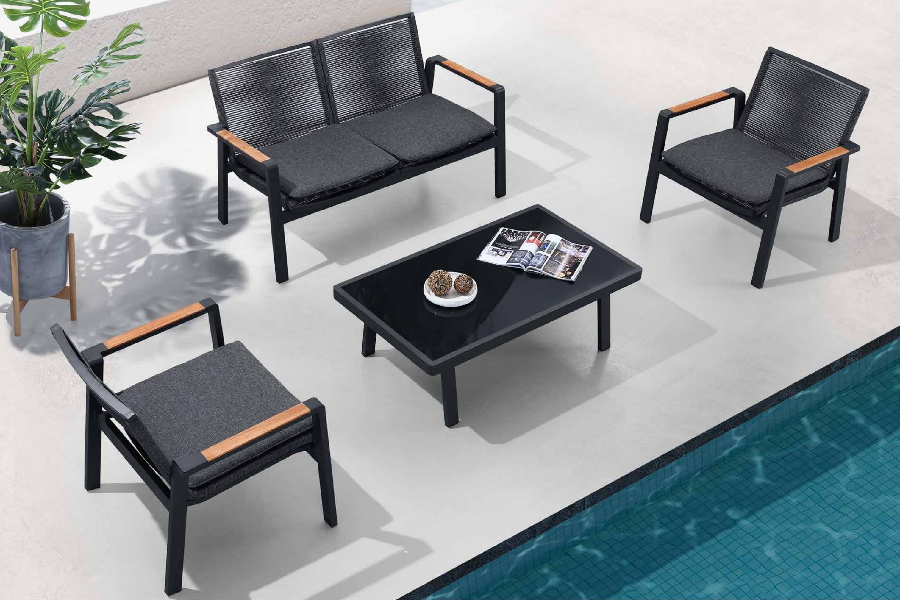 诺菲户外休闲系列由大件套沙发、组合沙发套、餐台系列、吧台系列、遮阳床、秋千等组成。它拥有一个完整的系列来满足各种生活需求。在扶手和桌子台面安装了天然柚木,用柔软轻盈的靠垫设计,诺菲展示了简约风,但从未失去它的舒适。有了 DIY的概念,消费者可以很容易地按说明书进行组装。 【诺菲系列】 “多元”---系列产品配套齐全,沙发、餐桌椅、躺床、高吧餐桌椅、秋千等,满足您的各种生活需求 “DIY”---诺菲全品类产品包装均为拆装,能够最大限度减少装柜空间,同时消费者可参照安装说明书轻松组装产品 “融合”---A级缅甸进口柚木+航空级合金框架+环保布料软包,三者完美融合,简约却不失高级质感