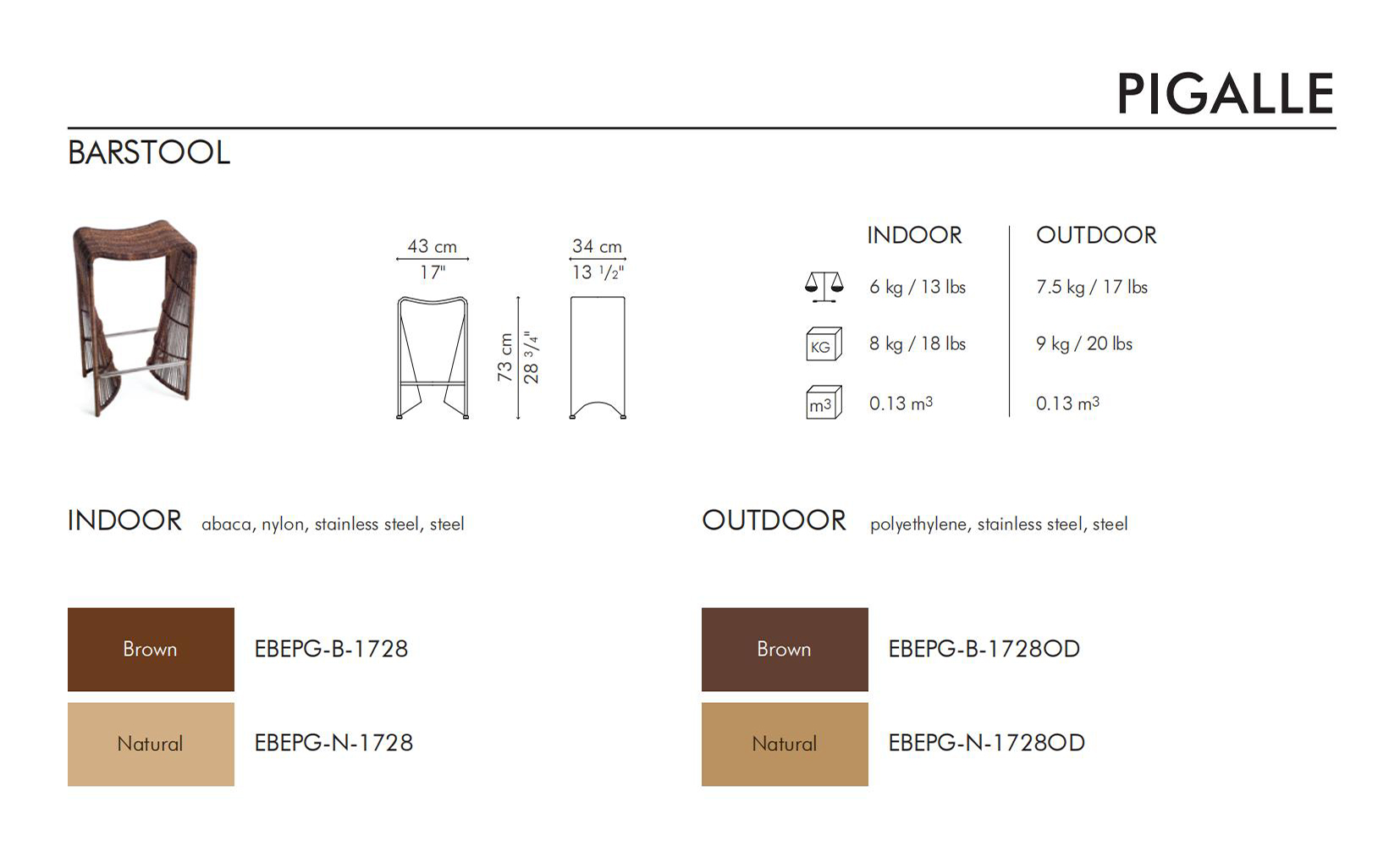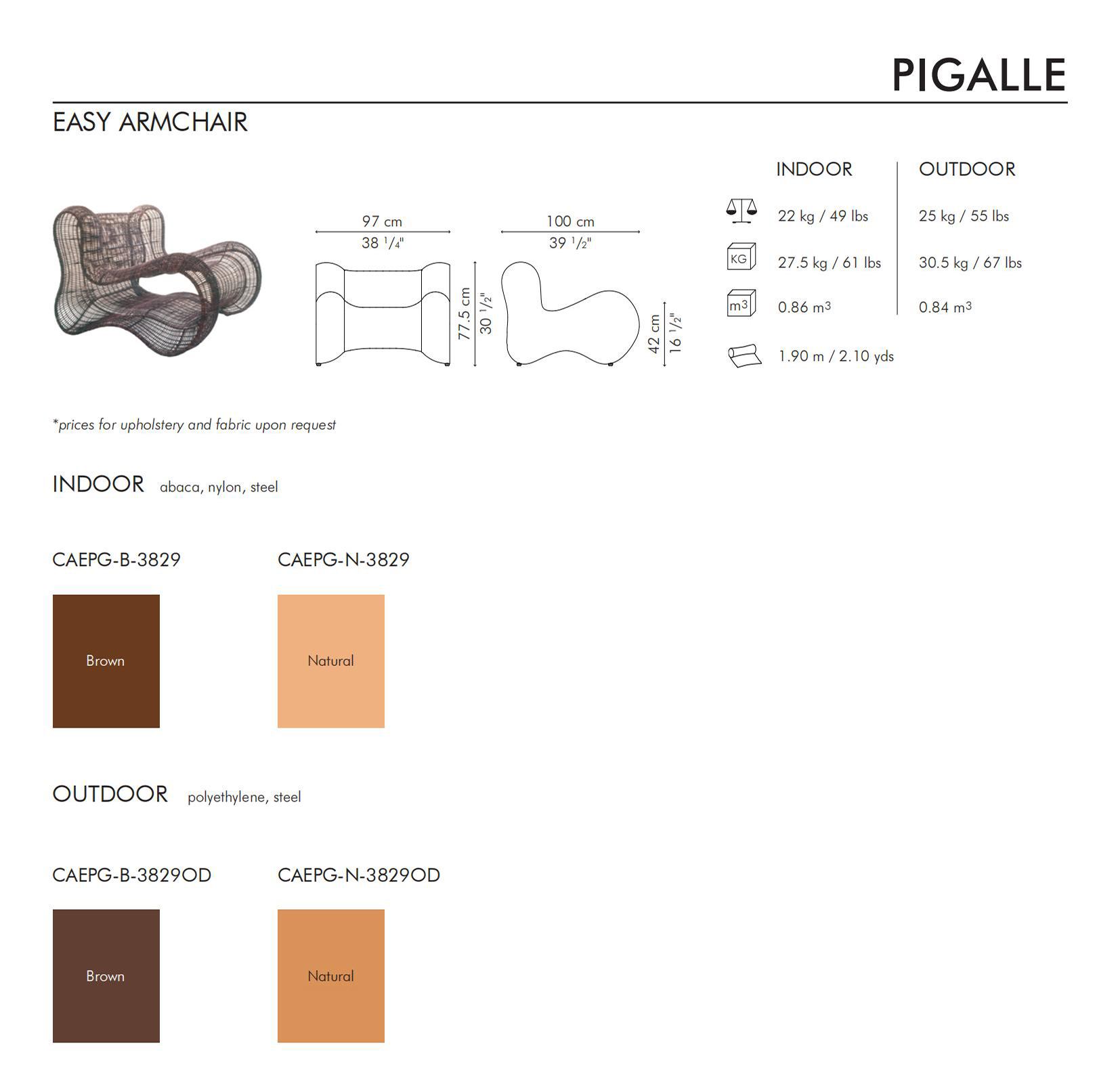Pigalle背后的灵感源自一个经典的来源:女性身体的轮廓。在手工雕刻的钢架上,用超过3000个绳结将几股蕉麻绳单独手工打结。